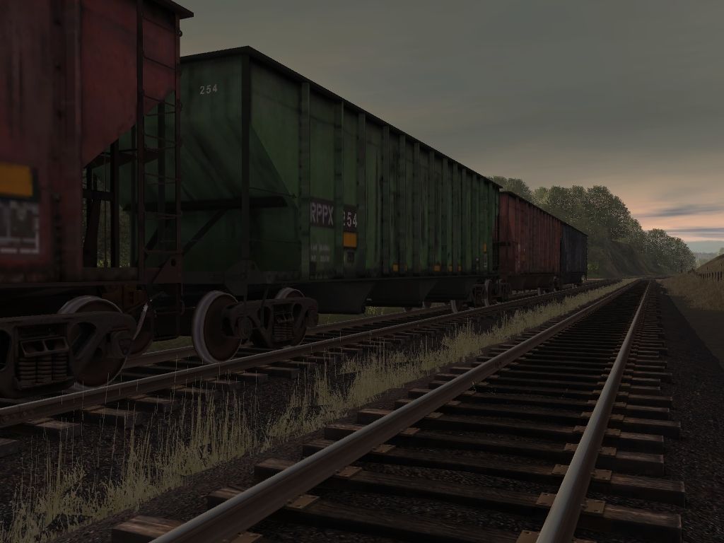 Tags: Trainz: A New Era, Coal Country, 03 - Coal Service, RPPX GP9 high, RPPX GP9 chop nose, RPPX Coach Car #20, RPPX Coach Car #22, RPPX Coach Car #21, RPPX 100 Ton Hopper, SVLX Log Rack Yellow