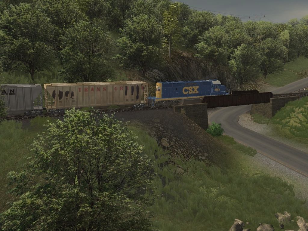 Tags: Trainz: A New Era, Coal Country, EMD SD40-2 CSX #8868, USO800 AWVR 54ft HOPPER 2 MURRIGAN, USO800 AWVR 54ft HOPPER 1 TRANS GRAIN(YELLOW), USO800 AWVR 54ft HOPPER 3 TRANS GRAIN(GREEN), 4Bay Canadian Hopper CN 380008, 4Bay Canadian Hopper CN 371893, UTLX LPG Tank (Modern)