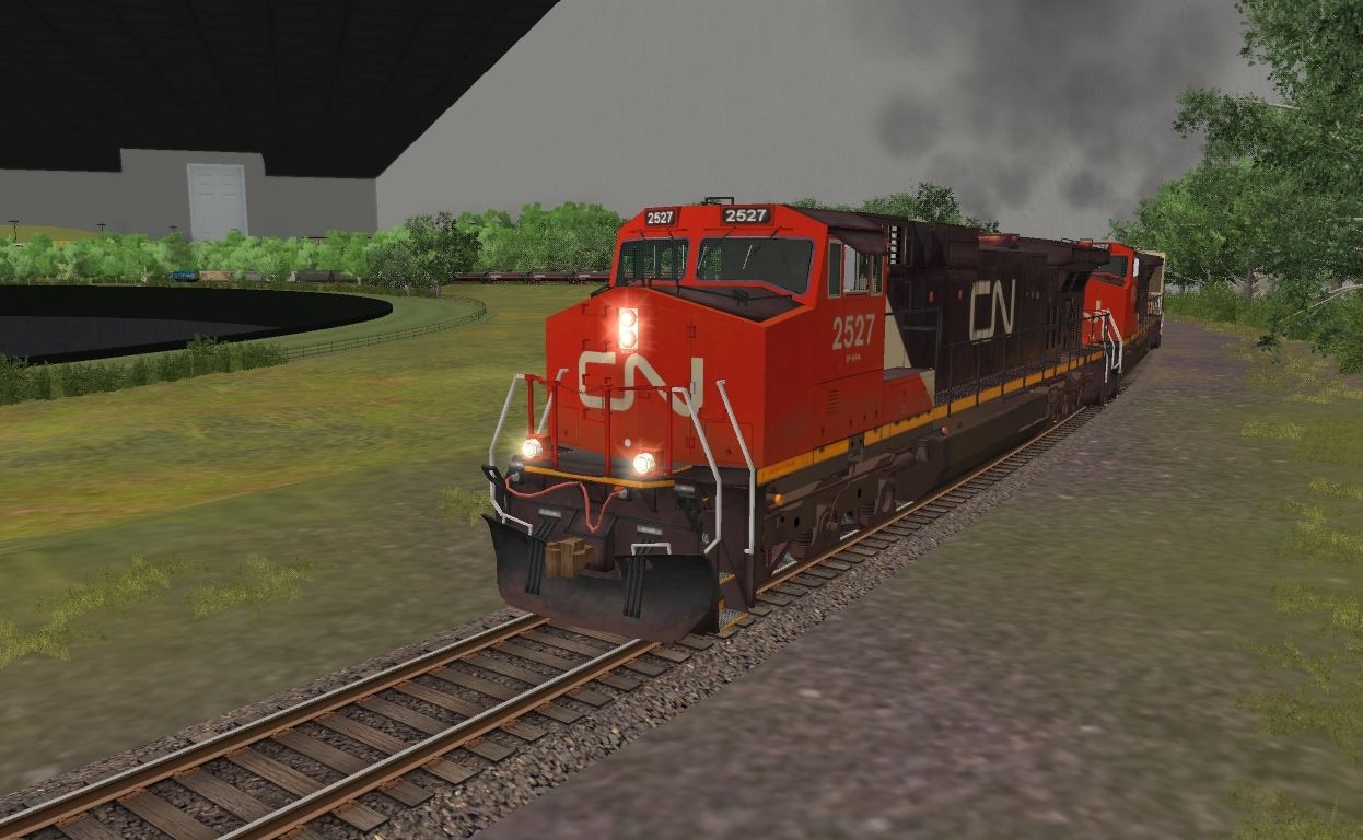 Tags: Trainz: A New Era, Brazemore Yard, CN Dash9 #2527, AWVR SD40-2 1206, USO800 AWVR 54ft HOPPER 1 TRANS GRAIN(YELLOW), USO800 AWVR 54ft HOPPER 2 MURRIGAN, USO800 AWVR 54ft HOPPER 3 TRANS GRAIN(GREEN), 4Bay Canadian Hopper CN 371893, 4Bay Canadian Hopper CN 380008, Tank Car PROCOR Striped LPG 60Ft, PC 4 Bay H62R 1, USO800 AWVR 8 BULKHEAD FLAT CAR, 50ft High Cube IC #533060