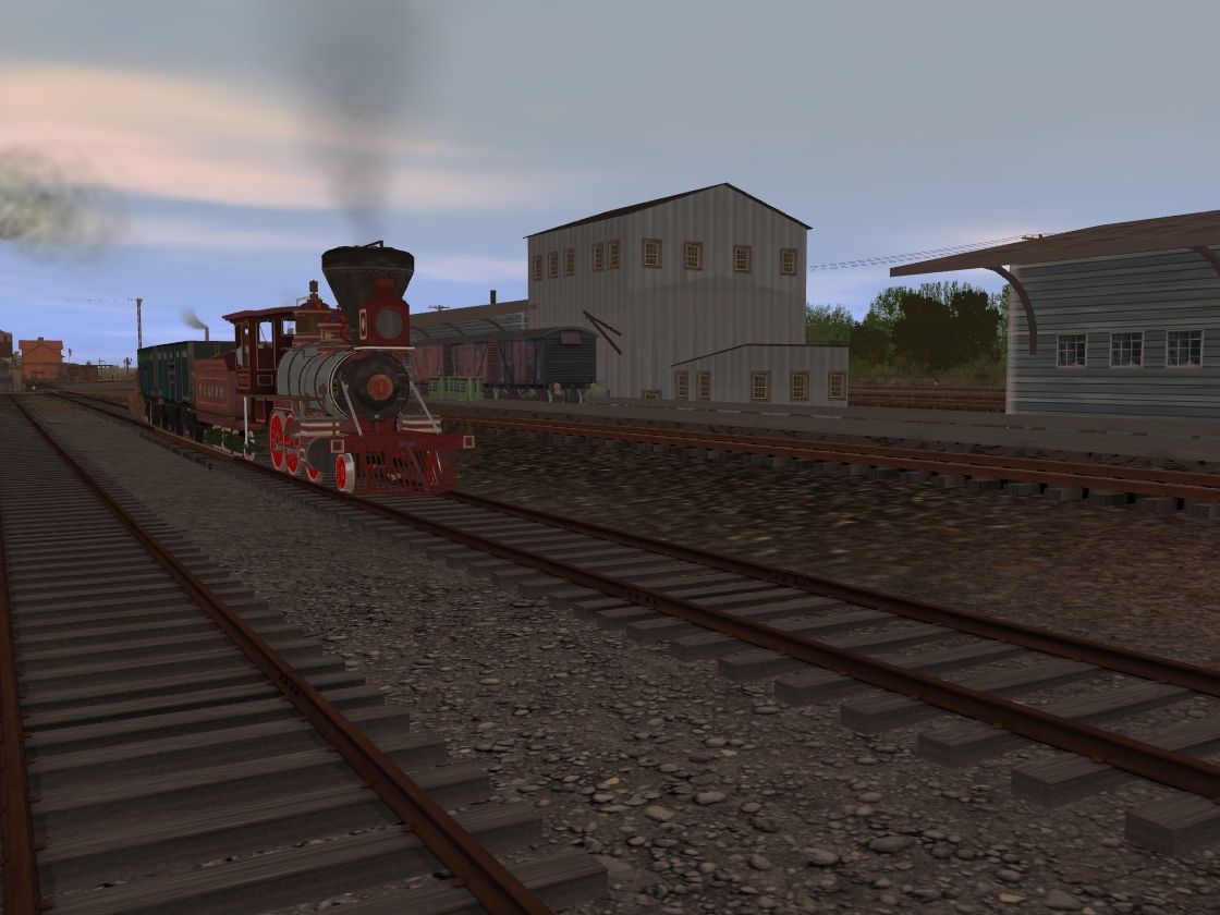 Tags: Trainz: A New Era, A _Black River & Utica RR, coal and scrap, V & T loco no 4 (Virginia) - as built, V & T loco no 4 tender (as built), V & T boxcar 1007 (yellow), LNER Consett Steel and Iron wagon 2004, V & T 8-ton ore car, V & T boxcar 1005 (1902+), ESSO Tank Wagon, BR standard van, RCH 1923 7 Plank G Bishop