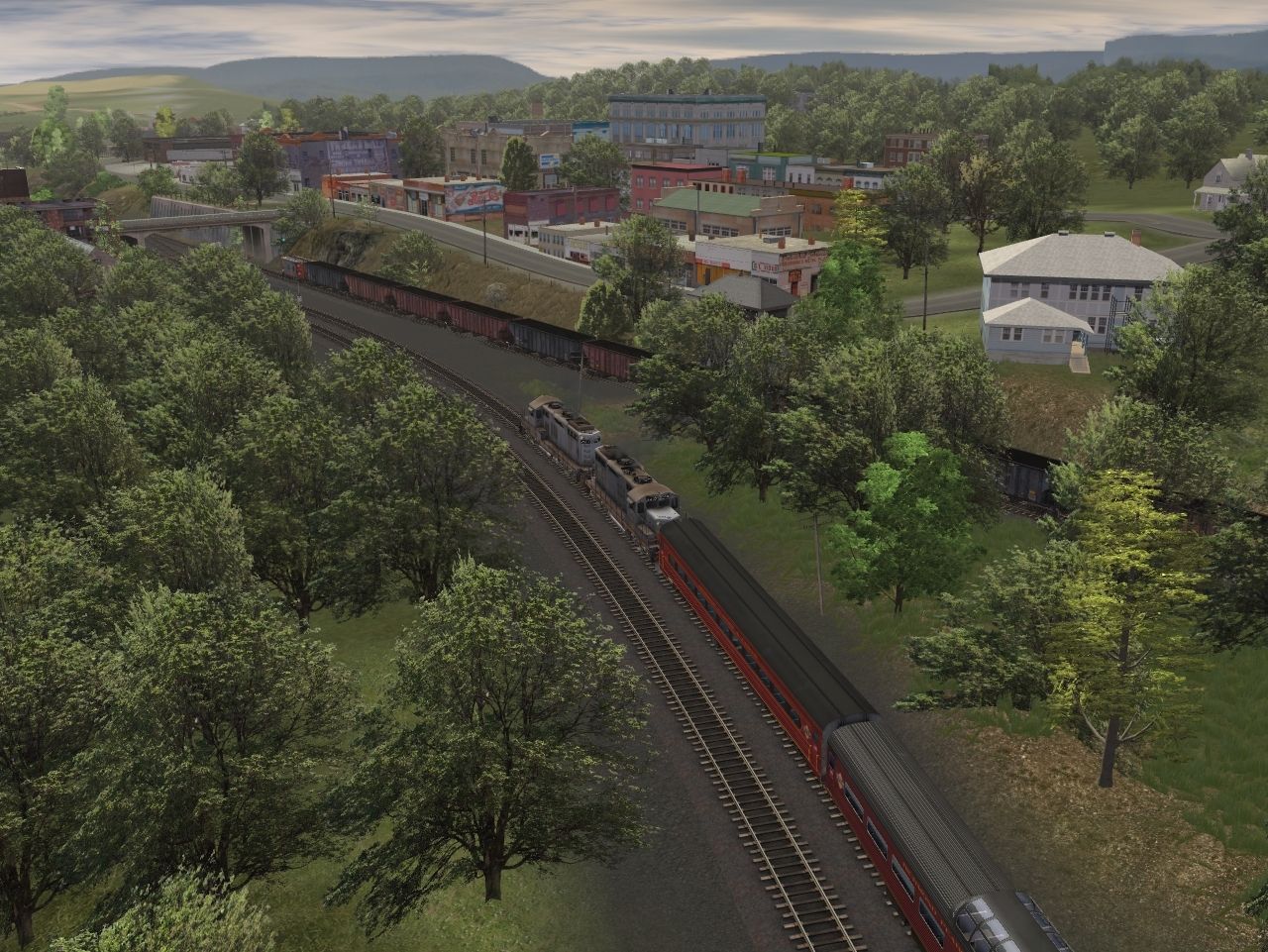 Tags: Trainz: A New Era, Coal Country, Railfanning, RPPX GP9 chop nose, RPPX GP18 (ex-CR), RPPX Coach Car #22, RPPX Coach Car #21, RPPX Coach Car Dome, RPPX Coach Car #20, RPPX 100 Ton Hopper, RPPX Transfer Caboose