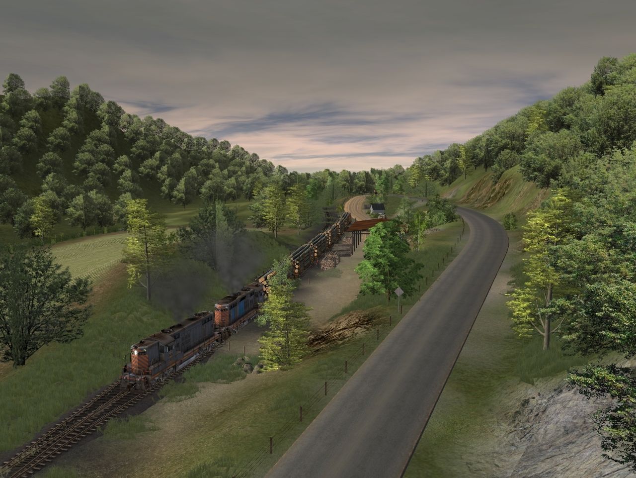 Tags: Trainz: A New Era, Coal Country, Log Service, RPPX GP9 high, RPPX GP18 (ex-CR), SVLX Log Rack Yellow, RPPX Transfer Caboose