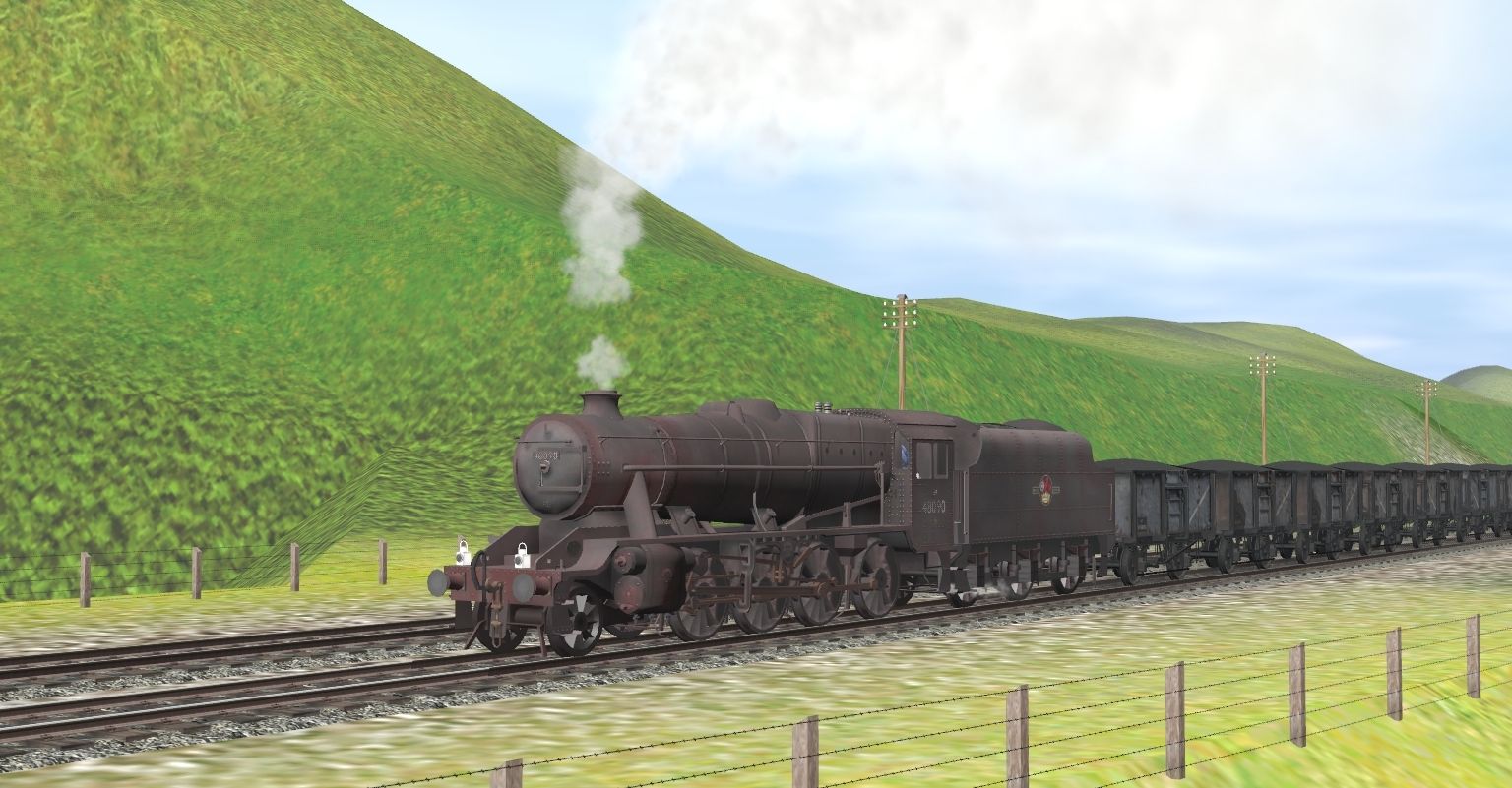 Tags: Trainz Railroad Simulator 2019, British Rail Central Scotland, Stanier 8F 2-8-0 BR Black, Stanier 4000 Gal Tender BR, BR Standard 16T Mineral Wagon (diag. 1/108) Set 1, BR 20T Brakevan Unfitted Weathered (diag. 1/504)