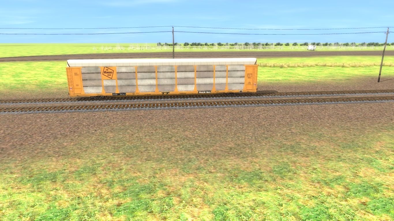 Posted by: fireman419 | Posted:2020-12-09 21:34:35 Caption: 89Ft Autorack MR Black Herald Tags: Trainz: A New Era, CNW/UP Iowa/Illinois Subdivision, 89Ft Autorack MR Black Herald