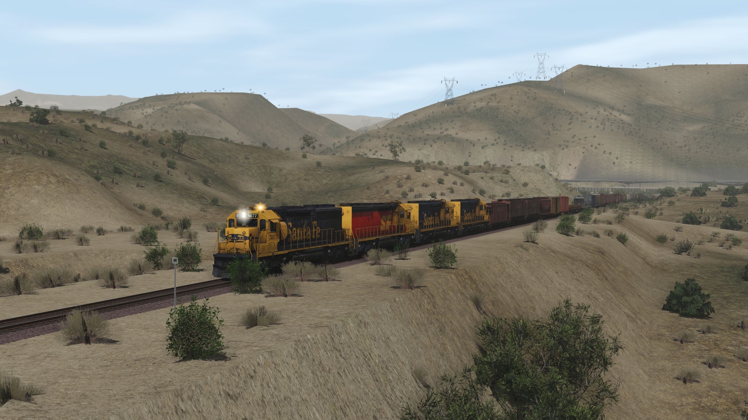 Tags: Trainz Railroad Simulator 2019, Cajon Subdivision - 1990 Part 1: The Pass, Default, ATSF SD45-2 blue/yellow warbonnet, ATSF SD45-2u (SPSF), ATSF SD40-2 2a 123 inch short hood, ATSF SD40-2 2a, GP30: ATSF #3207, GP38-2 ATSF, GP50 ATSF #3818, GP50 ATSF #3820, ATSF LO 2893, ATSF LO 4750 3 Bay Covered Hopper, ATSF ACF Centerflow 3 Bay long hatch