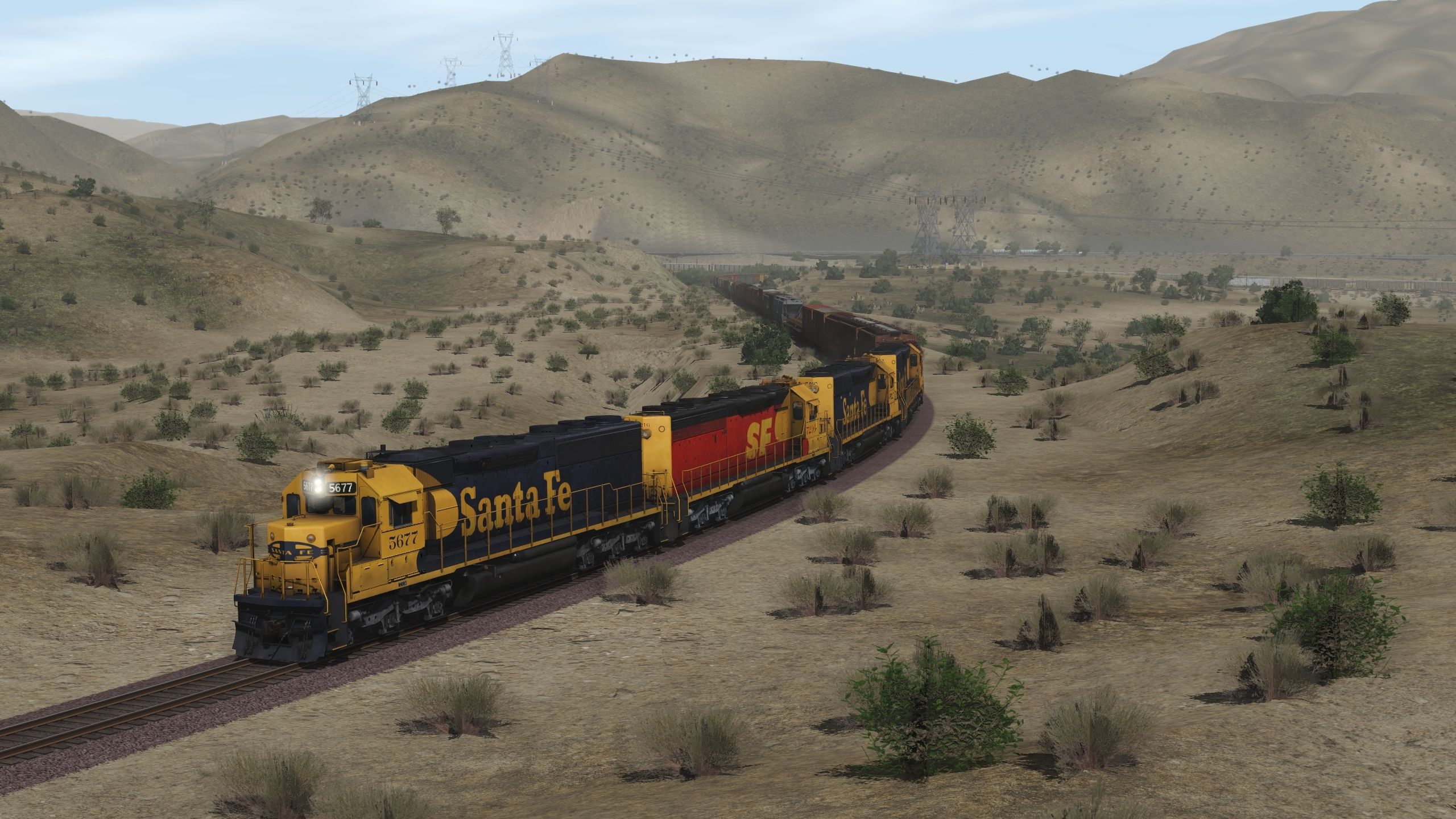 Tags: Trainz Railroad Simulator 2019, Cajon Subdivision - 1990 Part 1: The Pass, Default, ATSF SD45-2 blue/yellow warbonnet, ATSF SD45-2u (SPSF), ATSF SD40-2 2a 123 inch short hood, ATSF SD40-2 2a, GP30: ATSF #3207, GP38-2 ATSF, GP50 ATSF #3818, GP50 ATSF #3820, ATSF LO 2893, ATSF LO 4750 3 Bay Covered Hopper, ATSF ACF Centerflow 3 Bay long hatch