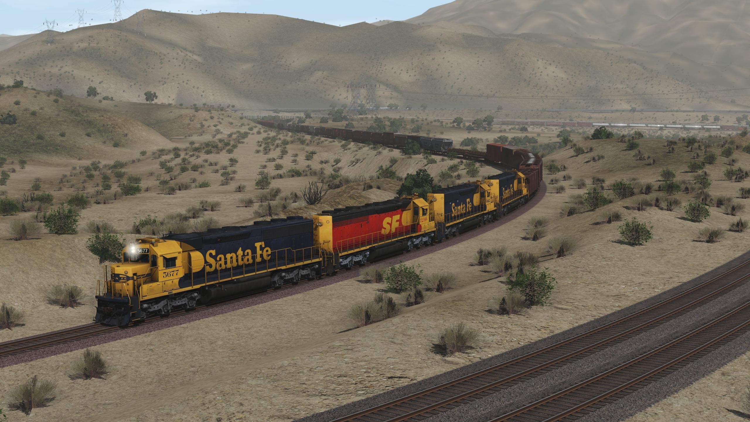 Tags: Trainz Railroad Simulator 2019, Cajon Subdivision - 1990 Part 1: The Pass, Default, ATSF SD45-2 blue/yellow warbonnet, ATSF SD45-2u (SPSF), ATSF SD40-2 2a 123 inch short hood, ATSF SD40-2 2a, GP30: ATSF #3207, GP38-2 ATSF, GP50 ATSF #3818, GP50 ATSF #3820, ATSF LO 2893, ATSF LO 4750 3 Bay Covered Hopper, ATSF ACF Centerflow 3 Bay long hatch