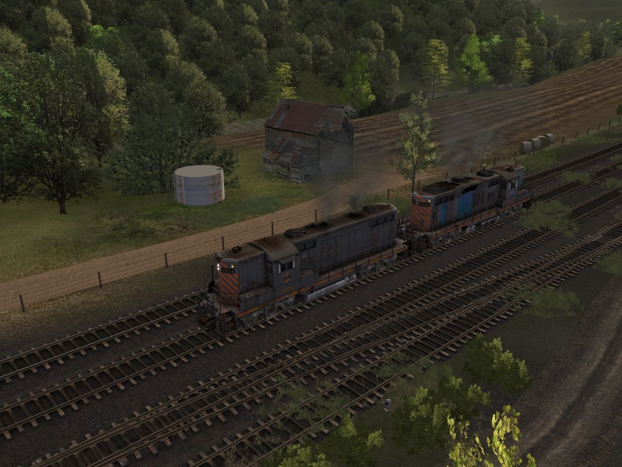 Tags: Trainz: A New Era, Coal Country, Log Service, RPPX GP9 high, RPPX GP18 (ex-CR), SVLX Log Rack Yellow