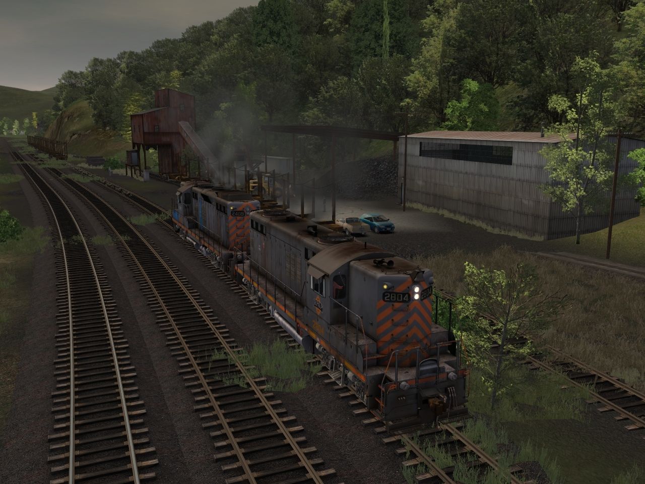 Tags: Trainz: A New Era, Coal Country, Log Service, RPPX GP9 high, RPPX GP18 (ex-CR), SVLX Log Rack Yellow
