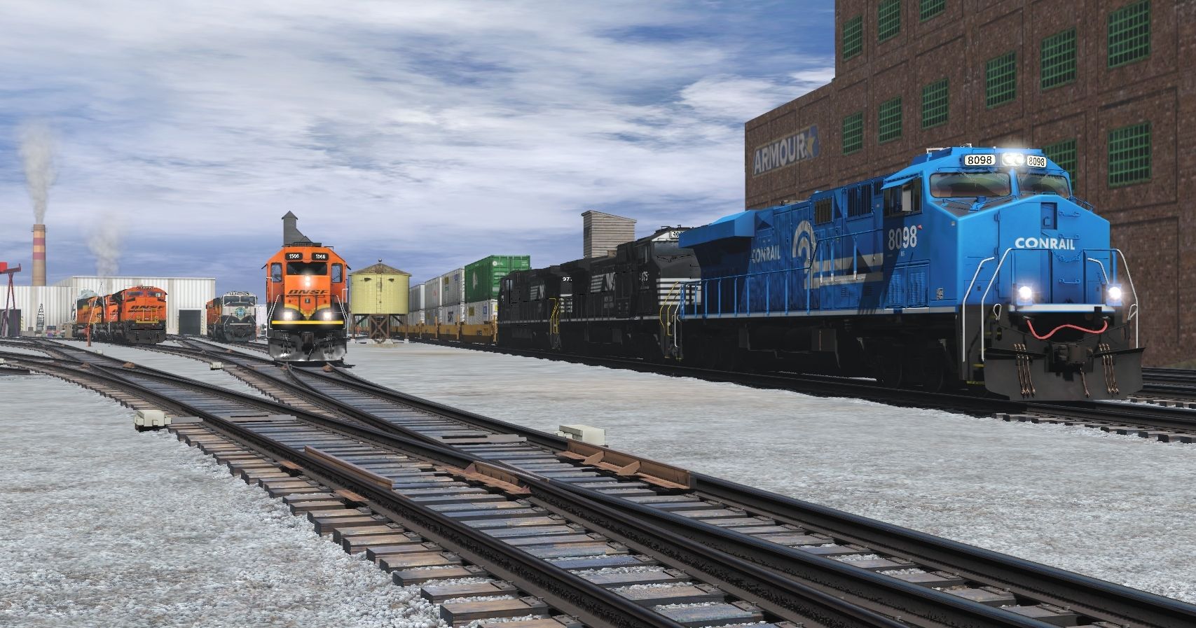 Tags: Trainz Railroad Simulator 2019, Quahog Sub v3.2, Quahog Sub V4 (PBR), NS ES44AC CR Heritage 8098, NS HH AC44C6M (DC to AC), BNSF SD40-2R, BNSF SD70M H2, NS Horsehead White-Face C40-9W, BNSF SD70ACe (Early), BNSF SD70MAC (BN exec patch w/swoosh #9402), BNSF SD70ACe (late), BNSF SD70M H3, TTX 53 Maxi-IV A, TTX 53 Maxi-IV C