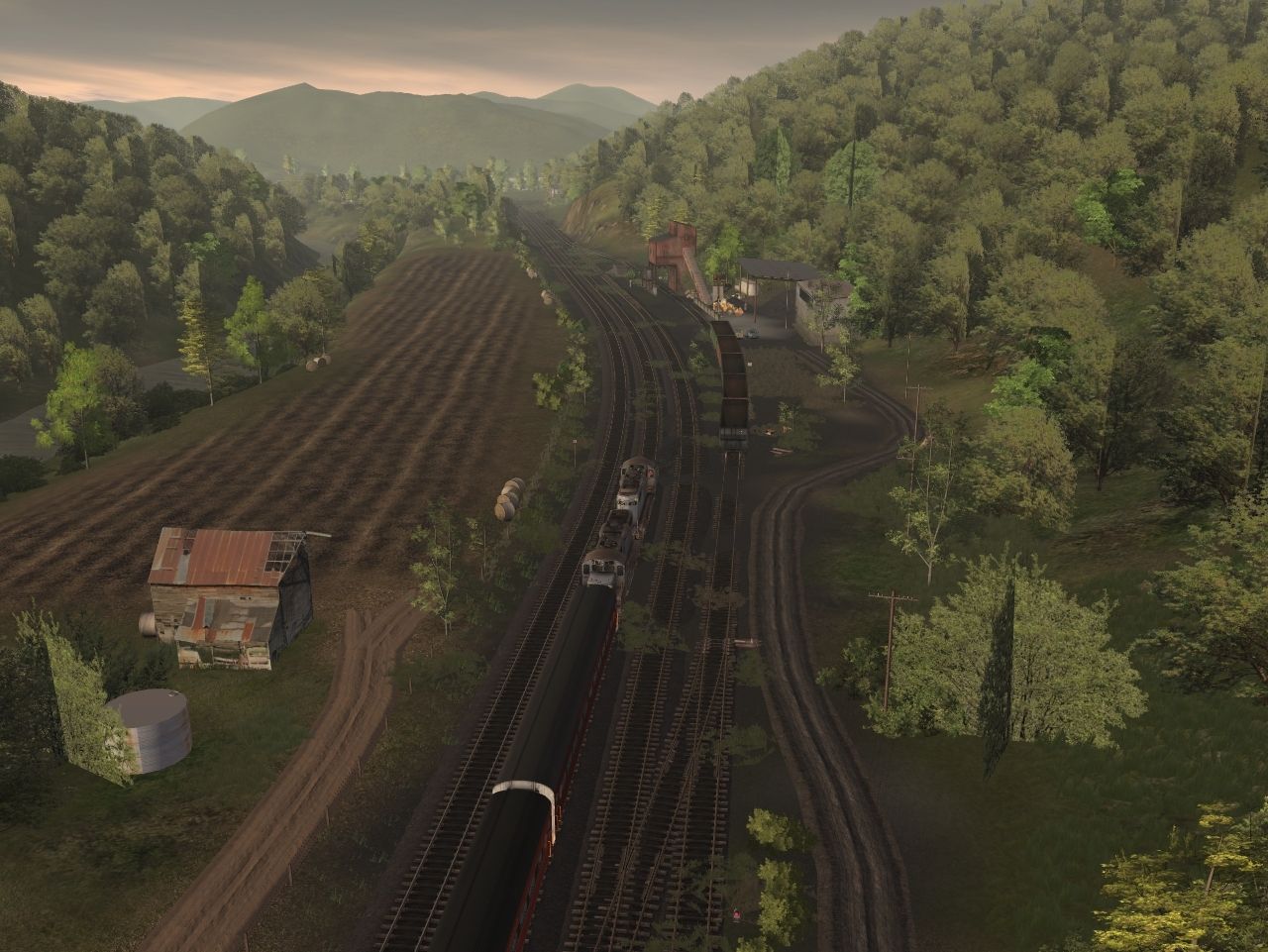 Tags: Trainz: A New Era, Coal Country, Tourist Train, RPPX GP9 chop nose, RPPX Coach Car Dome, RPPX Coach Car #20, RPPX Coach Car #22, RPPX 100 Ton Hopper