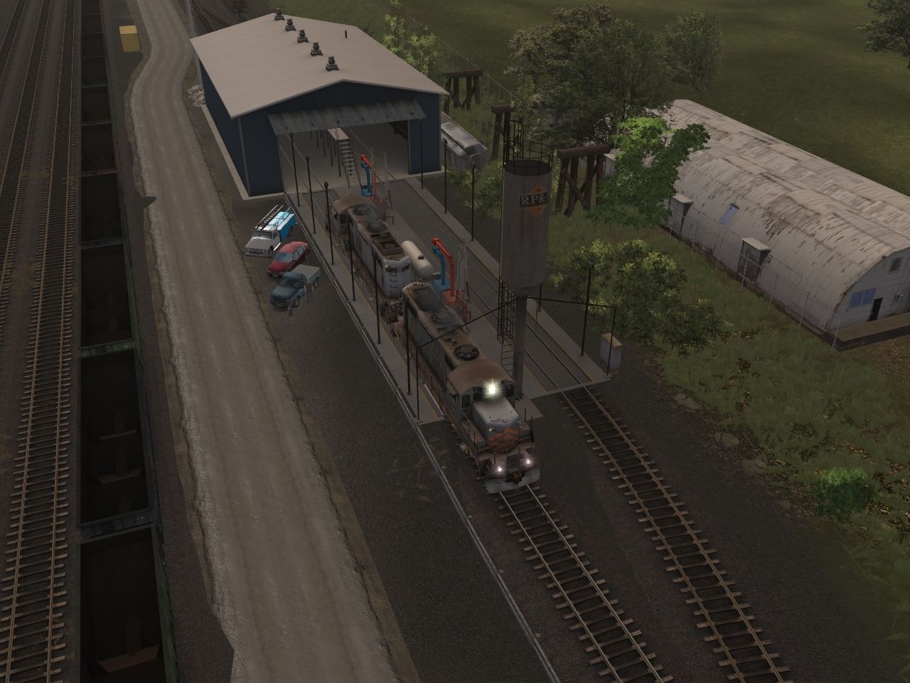 Caption: Coal Country - Tourist Train - locos at service bay in Richmond