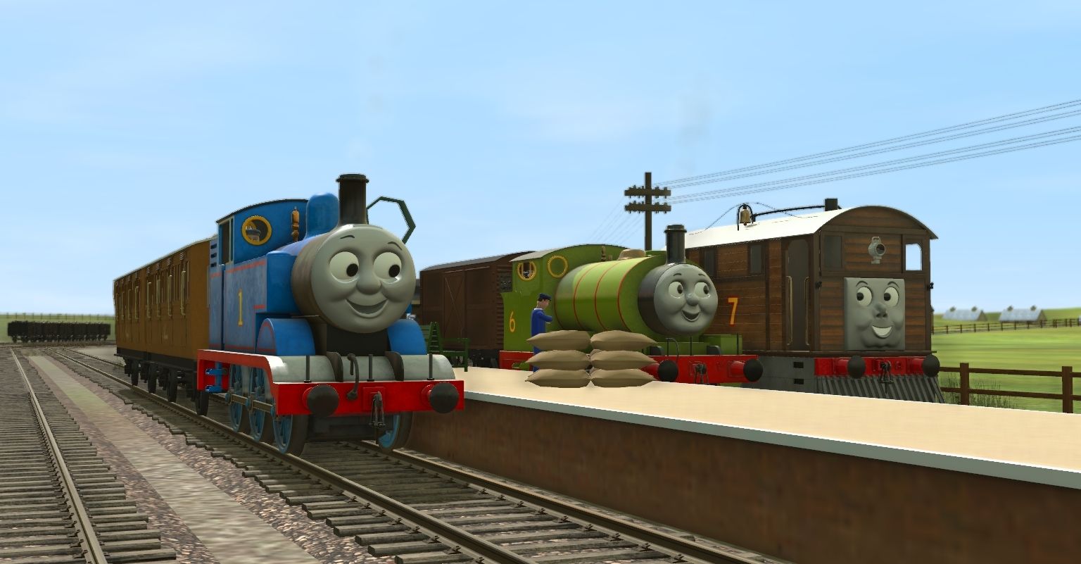 Tags: Trainz Railroad Simulator 2019, IoS - W smoke, Flying Cam, Thomas The Tank Engine S2, TTTE - Percy the Small Engine S1-S5 (TRS19), TTTE - Toby The Tram Engine [TRS19], TRW - S1 Annie, TRW - LMS 12T Steel Van, TRW - S1 Clarabel, TRW - 7 Plank Wagon