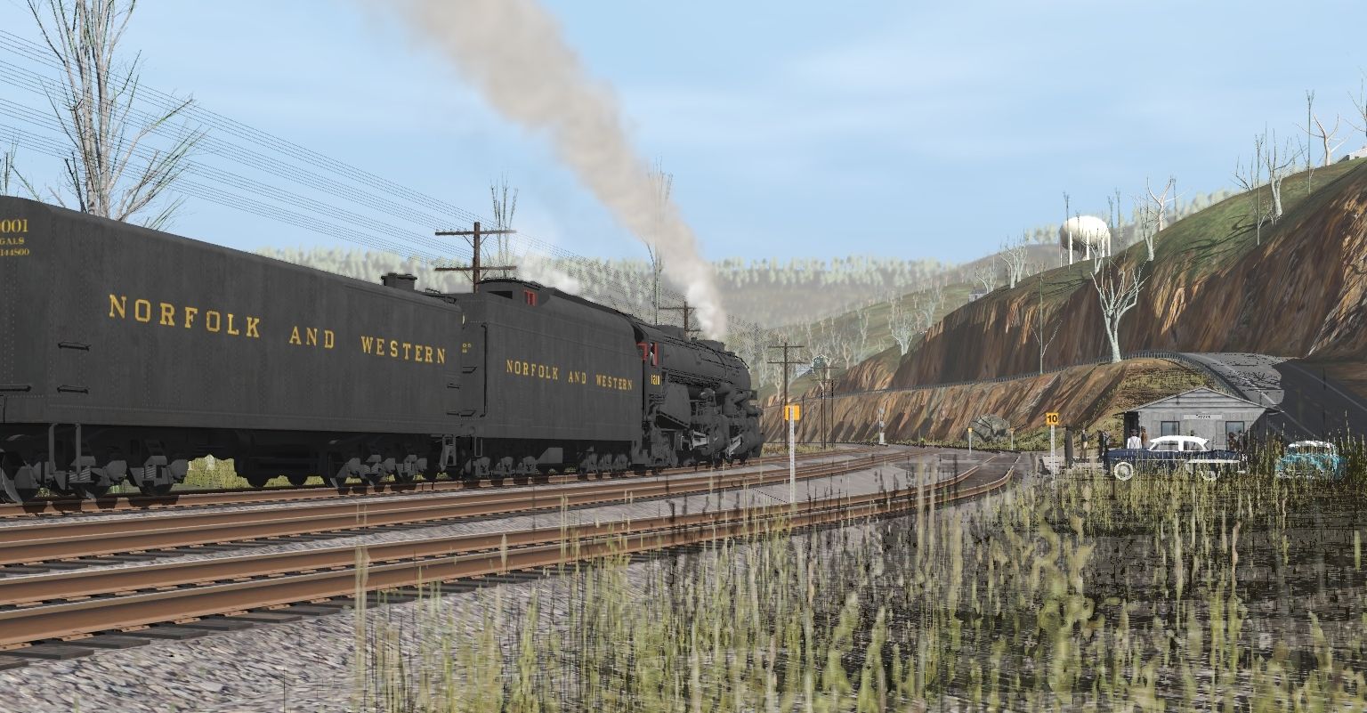 Tags: Trainz Railroad Simulator 2019, C&O Hinton Division, N&W A Class Engine V1, N&W Tool Car #9647, Cotton Belt Excursion 03 Power Car 1944, N&W A Class Aux Tender, N&W A Class Tender, NW 100 Ton Hopper 2, NS 100 Ton Hopper, Caboose-Center Cupola-N&W