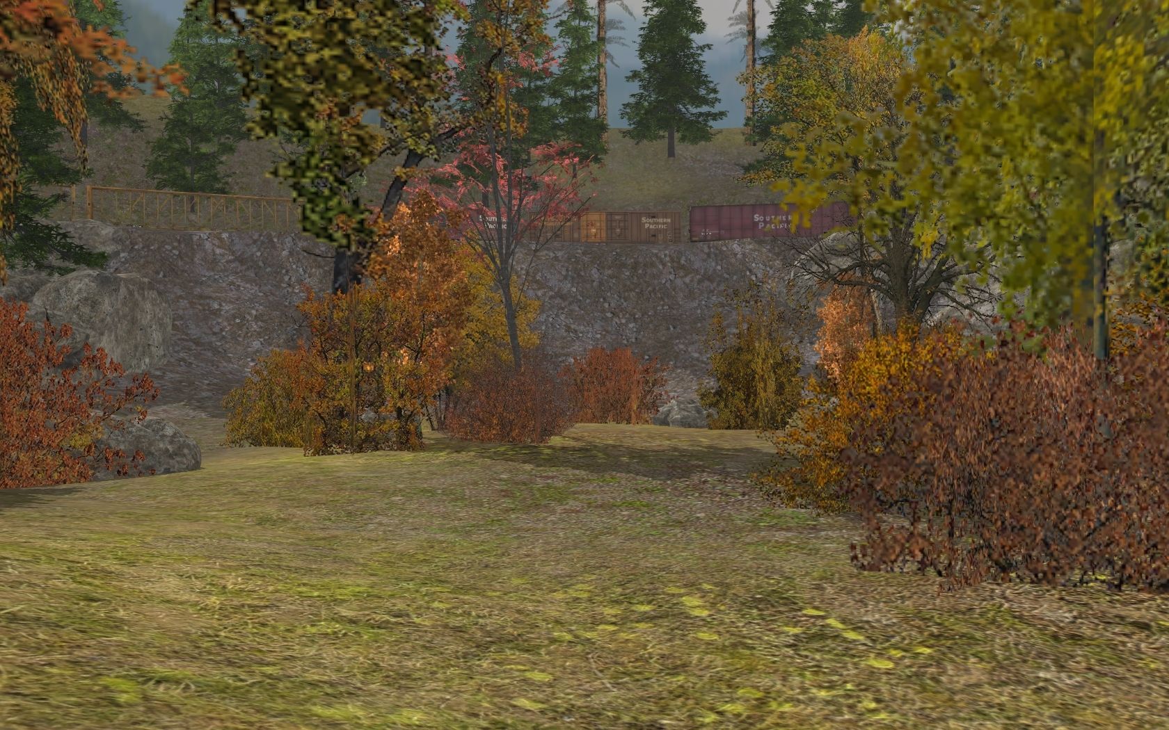 Tags: Trainz: A New Era, Oregon Model Railroad - Pacific Railway and Navigation, Ever Test, SP SD7R (renumbered 1974), 73ft Centerbeam TTX 2, 60ft Boxcar SP 654365, 60ft Boxcar SP - 222602, SP 60Ft.9In. woodchip gondola, SP 2 Bay Hopper ACF 2971, RBOX 50' ACF Boxcar 3, VFCX 23000 gal Funnel-Flow tank car, JR 50ft Boxcar HB #4, 73ft Centerbeam TTX 3, BN #455335 3 Bay ACF