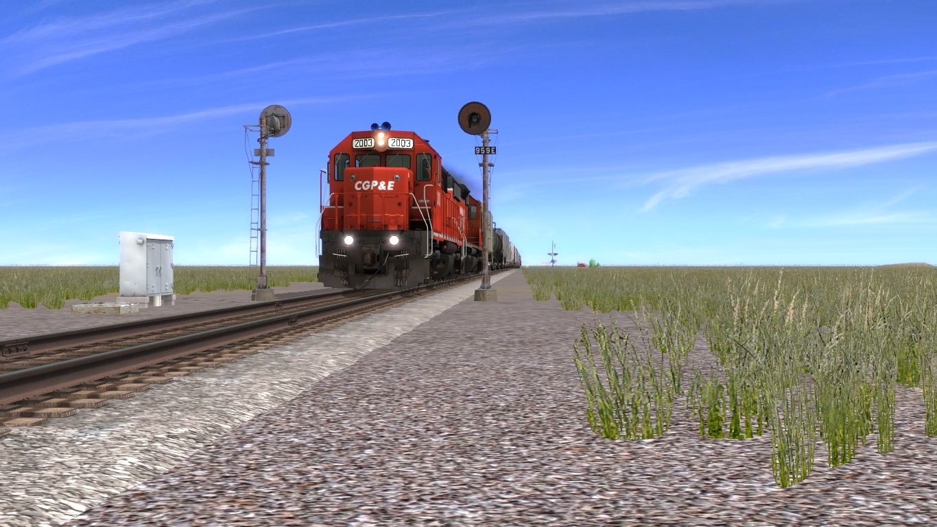 Tags: Trainz: A New Era, CGP&E Western Sub, Default, CGP&E GP38-2 2003, CGP&E SD40-2 4020, CGP&E 870683 Trinity 3 Bay Hopper, T108 CCSX 1100-1199 TRN 30120 gal, T108 UTLX 202500-202699 TRN 30120 gal, TCMX 152590 Trinity 3 bay, TFOX 60121 Evans Covered Hopper, ACF Centerflow FURX 843670 3 Bay long hatch, ACFX #45807 4 Bay ACF, FURX 821713 Trinity 3 Bay Hopper, FURX 822825 Trinity 3 Bay Hopper