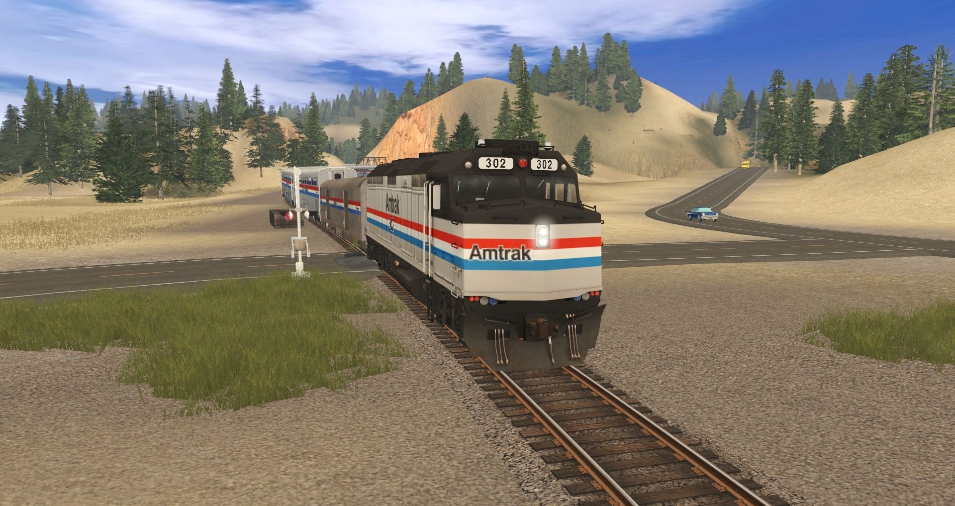Tags: Trainz Railroad Simulator 2019, City and Country USA - Reforged, Default, AMTK F40PH ph3 (early), Amtrak Baggage Car 1206 phase III, Amtrak III Coach Superliner, Amtrak III Coach Baggage Superliner, Amtrak III Diner Superliner, Amtrak III Sleeper Superliner, Amtrak III TransSleeper Superliner