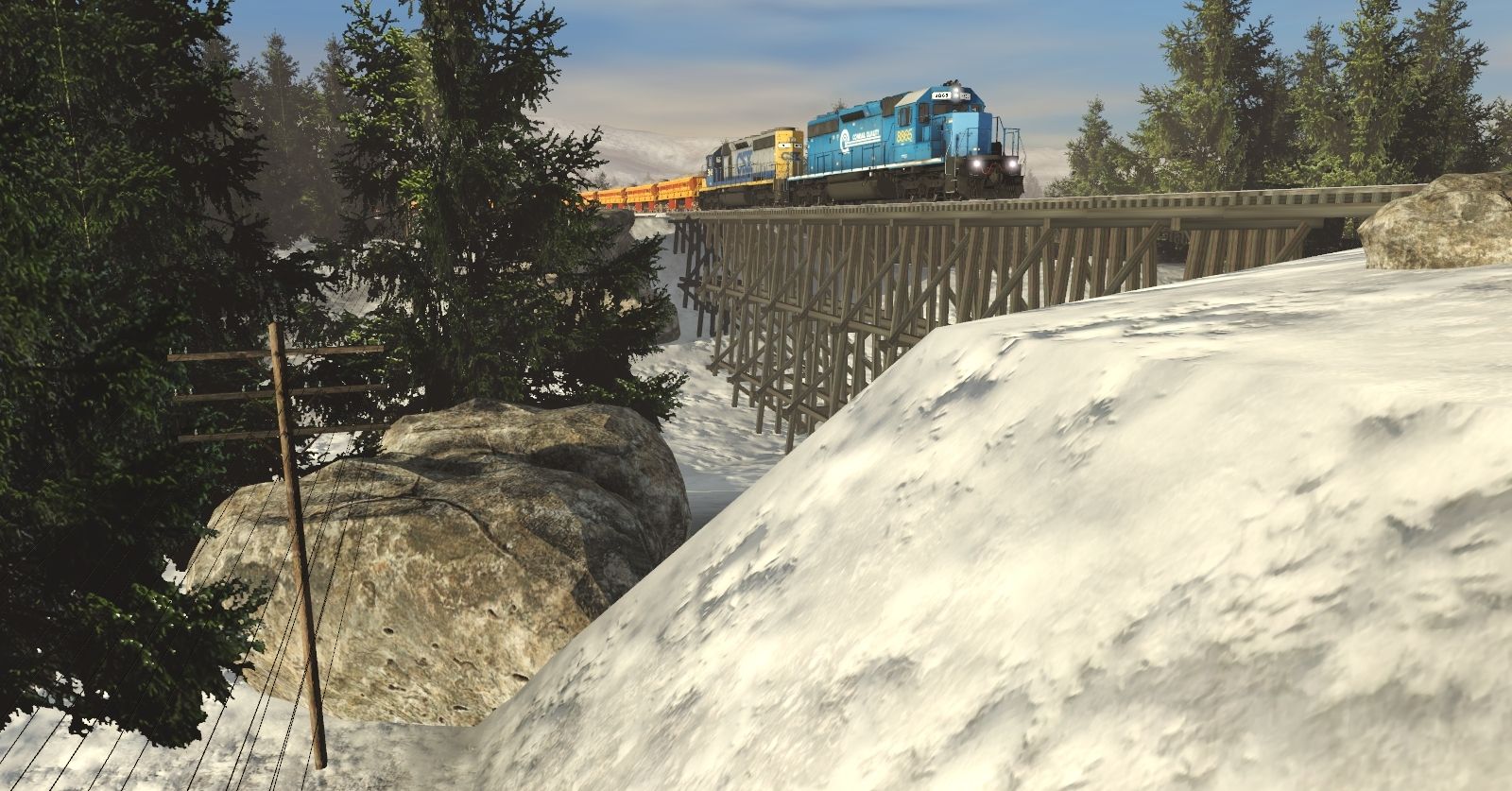 Tags: Trainz Railroad Simulator 2019, Legacy of the Burlington Northern v4, Legacy of the Burlington Northern v4 - Default, CSX SD40-2 8865, CSX (ex-CR) YN2 SD40-2, Diffco Side Dump Car CSXT 913300