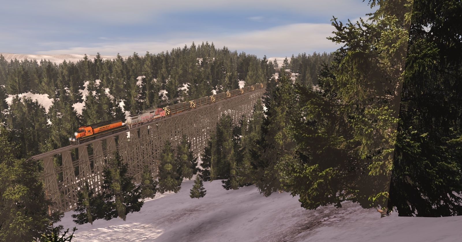 Tags: Trainz Railroad Simulator 2019, Legacy of the Burlington Northern v4, Legacy of the Burlington Northern v4 - Default, BNSF SD40-2 H3, BNSF Dash 8-40CW patch, SVLX Log Rack Yellow, SVLX Log Rack