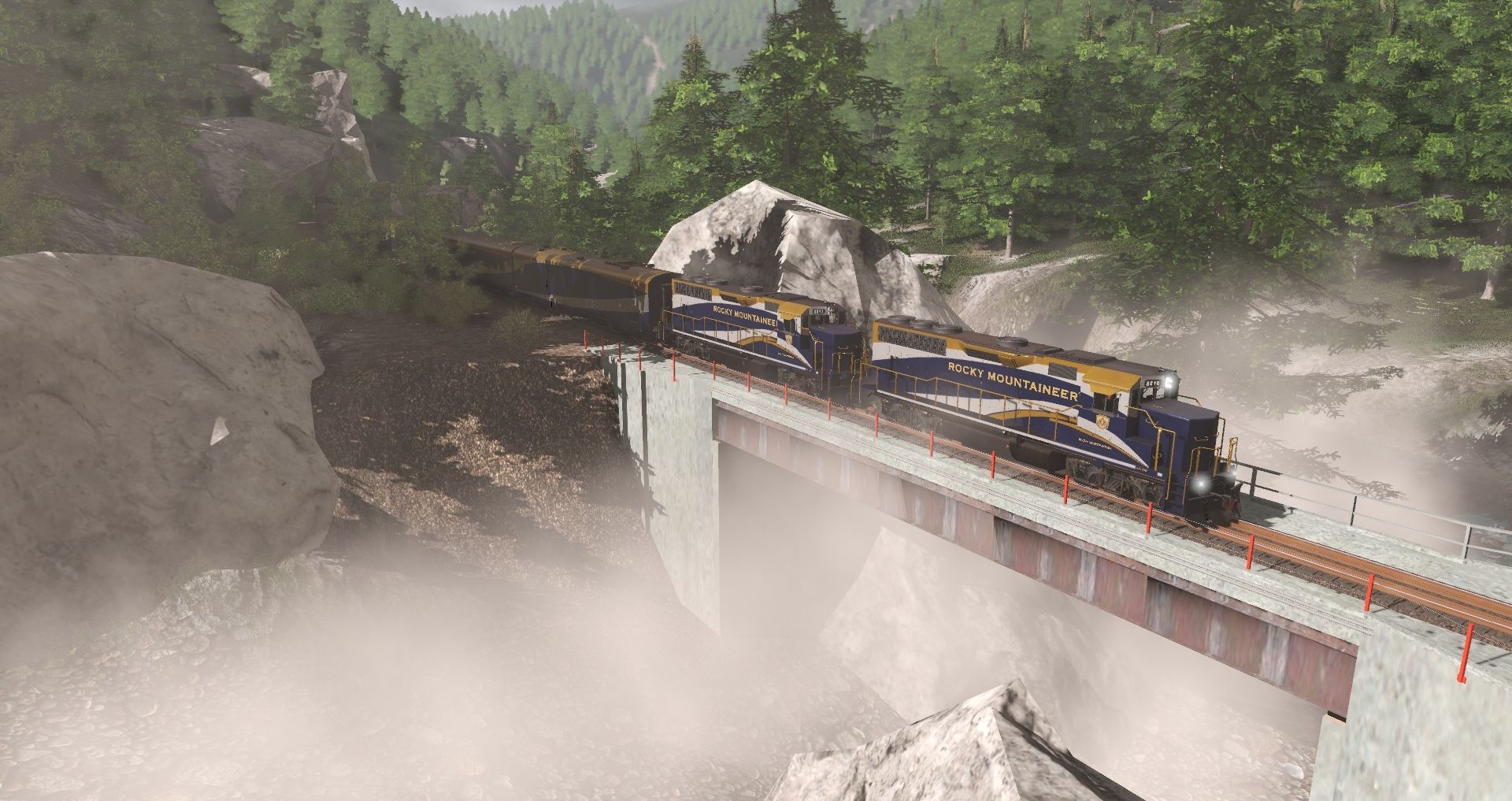 Tags: Trainz Railroad Simulator 2019, Canadian Rocky Mountains - Golden BC, 02 Rocky Mountaineer - Eastbound Engineer, RMRX GP40-2, RMRX Baggage/Generator, RMRX 'Red Leaf' Coach, RMRX 'Silver Leaf' Glacier Dome, RMRX 'Gold Leaf' Ultra Dome