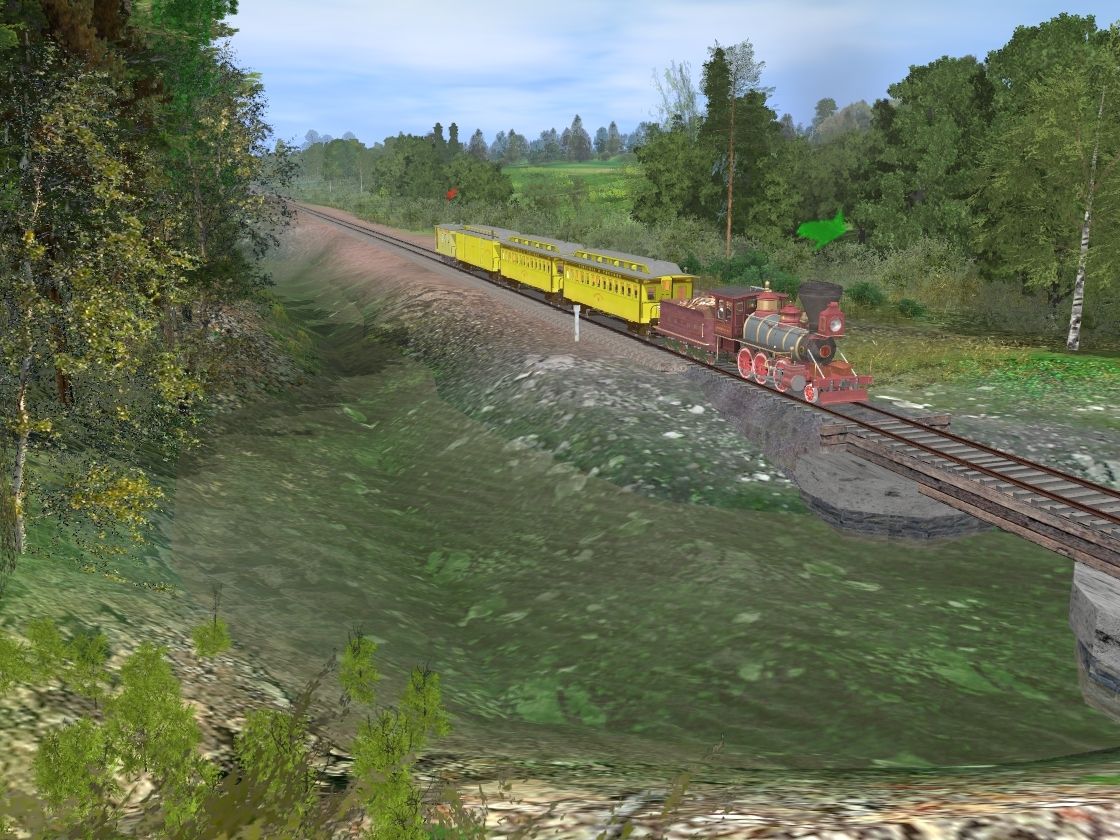 Tags: Trainz: A New Era, A _Black River & Utica RR, Default, V & T loco no 14 (Esmeralda) ca 1870's, V & T loco no 14 tender ca 1870's, V & T Coach No 3, V & T Baggage / Mail Car No 2, V & T Caboose No 6 yellow
