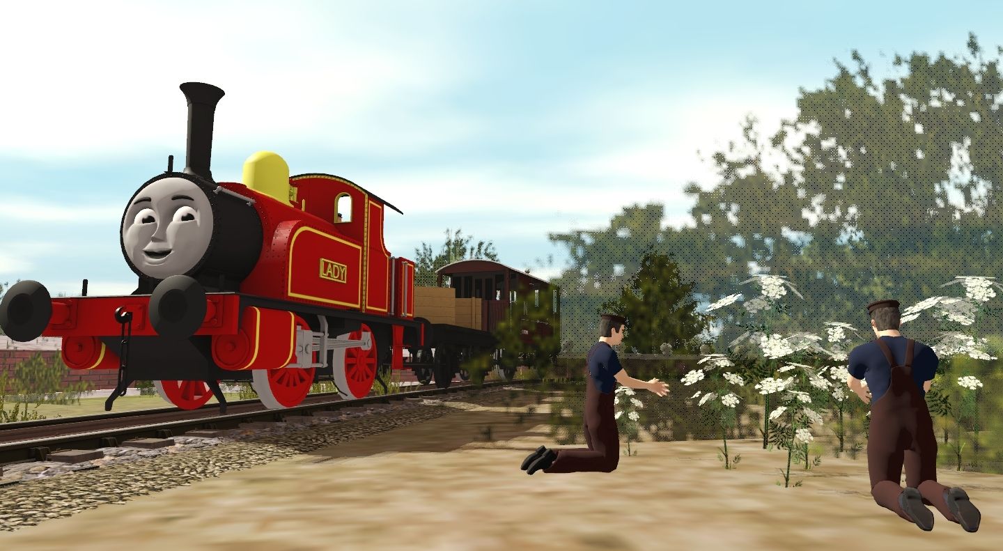 Tags: Trainz Railroad Simulator 2019, Ulfstead Castle & Dinosaur Park, Default, Lady the Industrial 0-4-0, TRW - BR 13T Conflat (TVS), LNER Brakevan Bauxite