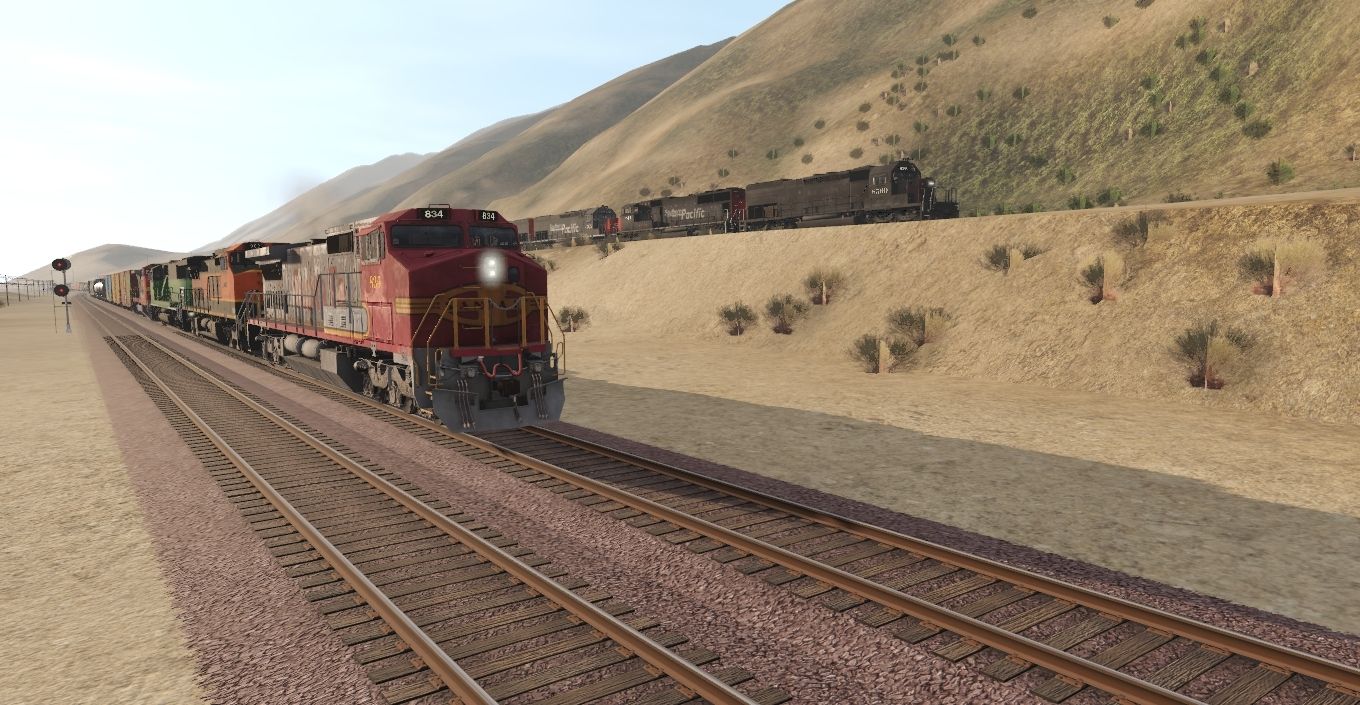 Tags: Trainz Railroad Simulator 2019, Cajon Subdivision - 1990 Part 1: The Pass, Default, ML765 Weathered ATSF C40-8W, BNSF H1 Dash 9-44CW, SP SD40T-2 Weathered, BN SD60M, SP SD70M, BNSF B40-8W Warbonnet, SP SD40T2 ver 3 Speed Lettering, SP SD40T2 ver 4 Speed Lettering w\ U.P. patch, Custom 60' ACF Boxcar - Orange Orange, Custom 60' ACF Boxcar - Sam & Euan's, SP 60Ft.9In. woodchip gondola