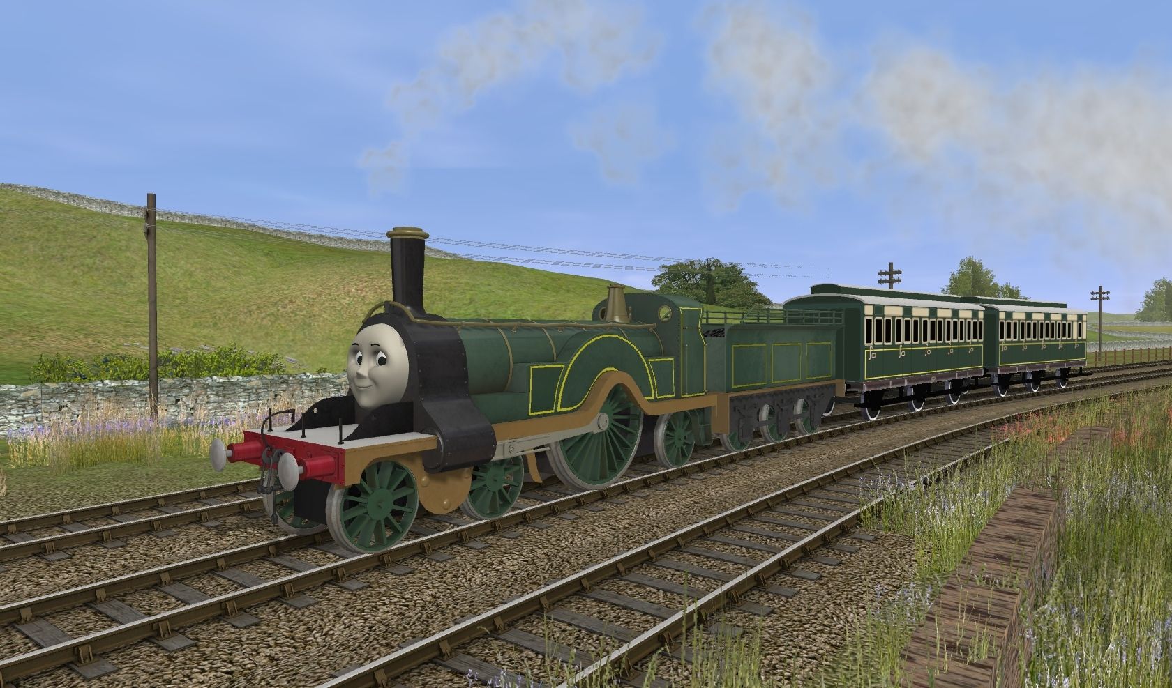 Tags: Trainz: A New Era, Cgi Sodor fv, CGI - Emily the Emerald Engine (5.1), CGI - Emily's Tender (5.1), Emily's Carriage - Composite, Emily's Carriage - Brake