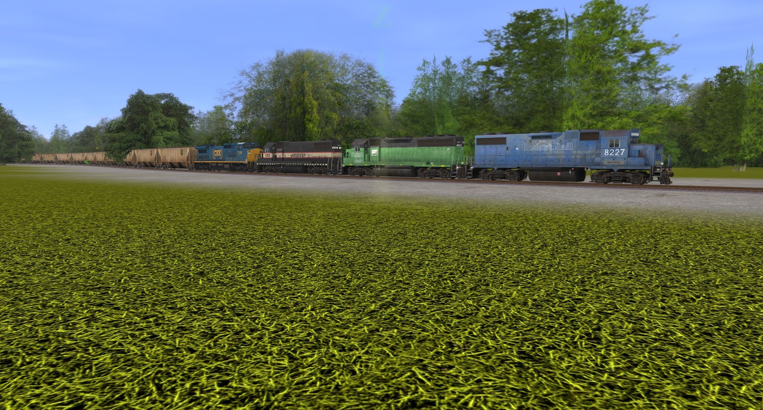 Tags: Trainz: A New Era, TR, Default, IndustRail ex-CR GP38-2, CORP GP40-2, Aberdeen GP38-2, CSX C40-8W yn3b (ex-CR), CSXT Grain Express Trinity 3 Bay Hopper, CSXT Trinity 3 Bay Hopper