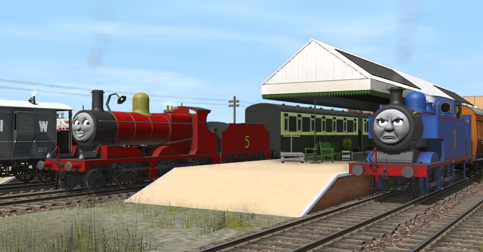 Tags: Trainz Railroad Simulator 2019, IoS - The Kellsthorpe Extension sunset, Flying Cam, RWS 3D - RWS Thomas MK2, RWS 3D - RWS James, Thomas engine 0-6-0T class engine, NWR Spiteful Brakevan, NWR 4 Plank SCC Wagon Tarpaulin, NWR 4 Plank FQC Wagon Red, NWR Tar Tanker, RWS 3D - RWS James' Tender, NWR SCC China Clay Tanker, Si3D - Suburban Coach (RWS)