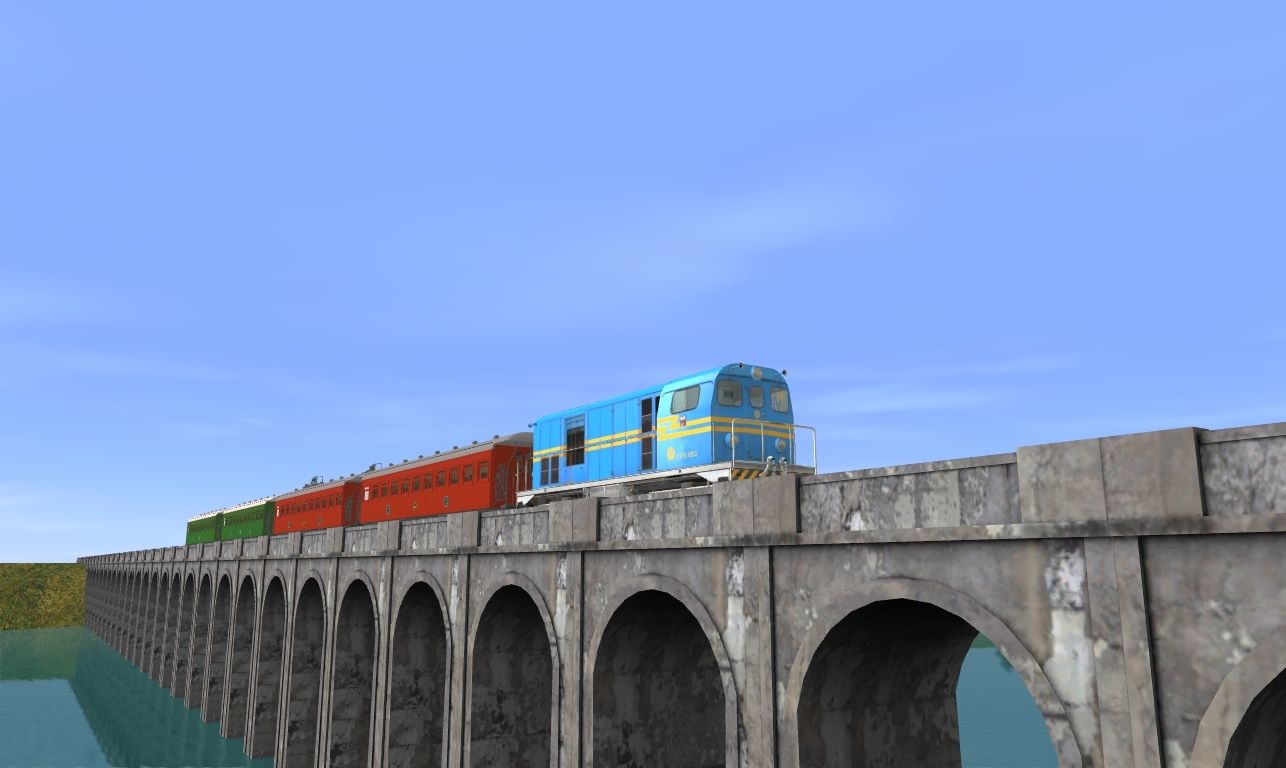 Tags: Trainz: A New Era, Linha do Douro e Sabor, Default, FEVE Alsthom 1052, P.V.601, NZGR Aa 2nd class coach red, NZGR Aa 2nd class coach green, Feve 2TT, PT CP Gabs F