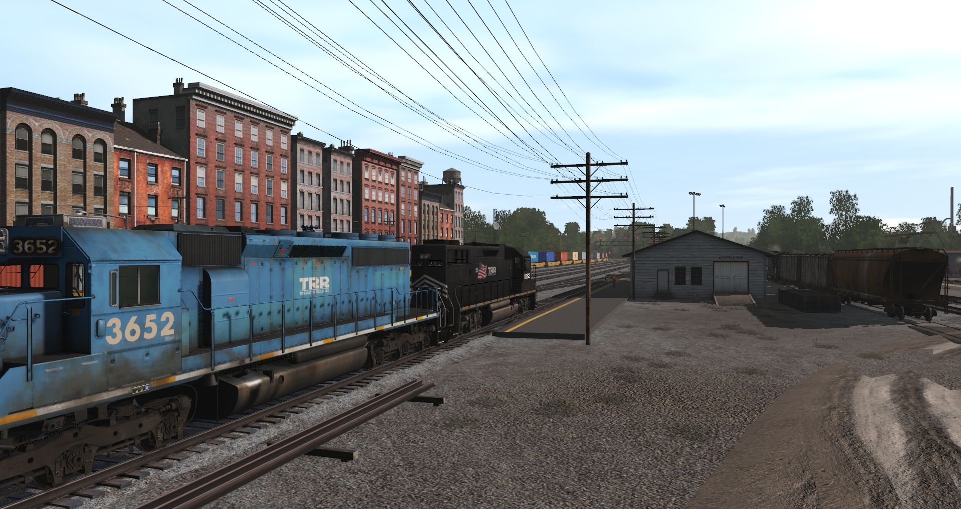 Tags: Trainz Railroad Simulator 2019, Tidewater Point Rail, Container delivery, TRR SD40-2 patched, TRR railcar mover, TRR GP38-2, TRR GP9 chop nose, NS C30-7, AP53 TTX Wellcar A, AP53 TTX Wellcar B, CSXT ex Chessie ACF Centerflow 3 Bay long hatch, NYC ex-RDG LO 3510, UTLX 23000 gal Funnel-Flow tank car, CSX 100 Ton Hopper