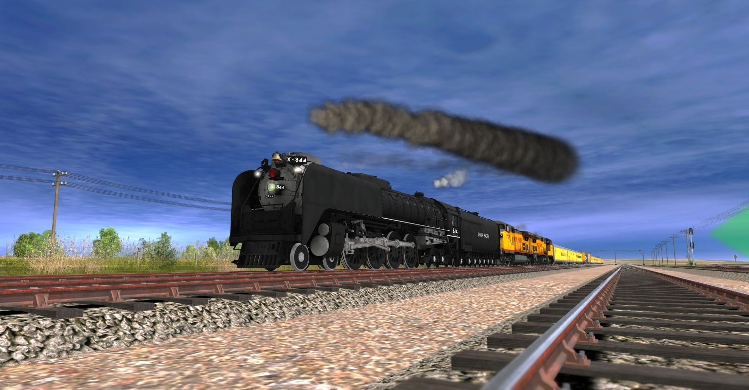 Tags: Trainz: A New Era, Sherman Hill vers 3.1, UP Class FEF-3 Modern, UP Dash 9-44CW-Lightning Stripe, UP Class FEF 23-C Oil Tender Black, up baggage dormitory 6002, up baggage 5772, UP_Coach_5450, UP Heritage Fleet Stair Car/Box car, 50ft up flatcar, UP 60' ACF Boxcar, UP_American_Falls_Pullman, UP_Pacific_Crest_Pullman