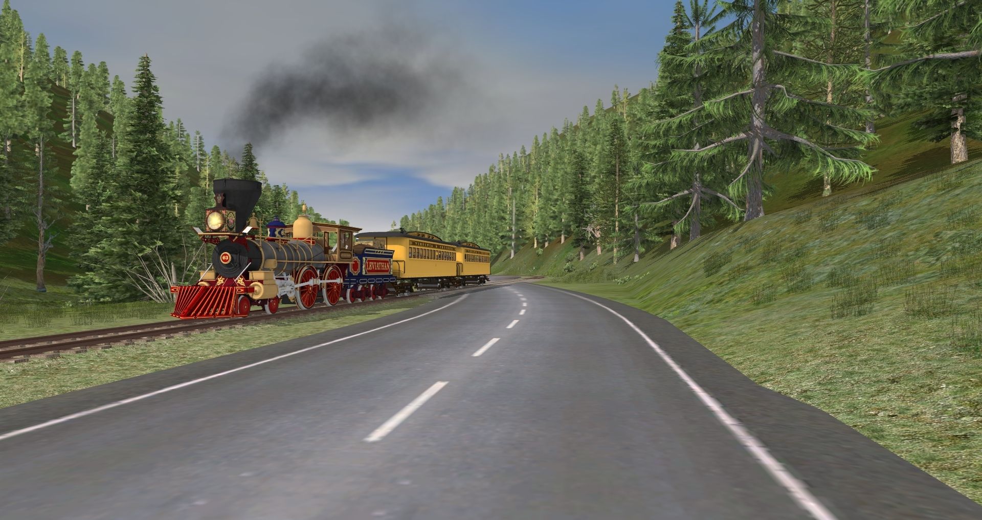 Tags: Trainz: A New Era, Milwaukee Road Avery-Drexel, Central Pacific 63 'Leviathan, Central Pacific 63 Tender, V&T Coach 12 circa 1885, V&T Coach 11 circa 1885
