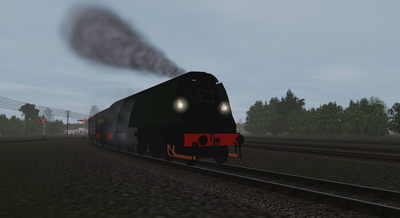 Tags: Trainz Railroad Simulator 2019, Abbey Town Railway, Default, Skyworks Merchant Navy, Deltic 1976 Blue, Skyworks Merchant Navy Tender, BR wagon CAR red/grey, BR VEA brown van, BR Shocvan, BR plywood no vent Van detailed 36, BR Planked Ventilated Van 2, BR Pallet Van weathered, BR PGA Tarmac CRH Group, BR Iron Mink ex GWR 2