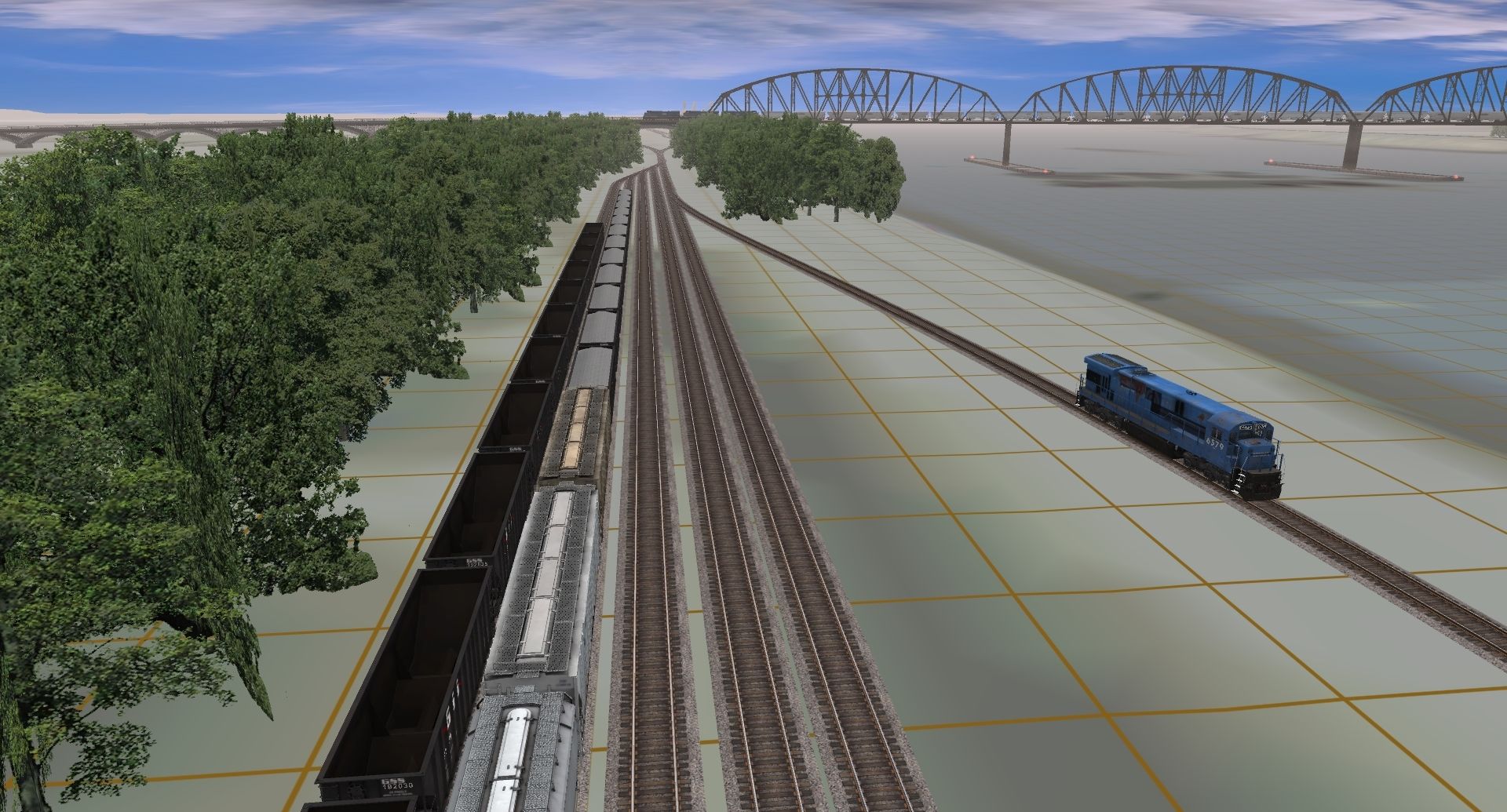 Tags: Trainz: A New Era, GSS Evansville, Default, CR C30-7A weathered, GSS SD70ACe, GSS AC4400AH 9050-9064, GSS AC4400CW 9000-9047, GSS SD40-2, GSS SD60, GSS 100 Ton Rock hopper, ADMX Trinity 3 Bay Hopper, GSLX 4250 3 bay, GSS Grey Trinity 3 Bay Hopper, NW 178919 LO 4750 3 Bay Covered Hopper