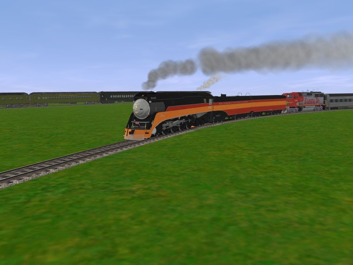 Tags: Trainz: A New Era, New Route, SP GS-4 #4449 Daylight Engine, ATSF GP60M, SP GS-4 #4449 Daylight Tender, SP GS-4 #4449 Daylight Auxillary Tender, CSX Business Train 05 Coach, Southern Coach 726 Man O War, Southern Coach 1068 Archroof, Sleeper C&O George Washington, SP Lightweight Cascade 22 Roomette, Coach C&O George Washington 742, Southern Coach 1081 Heavyweight