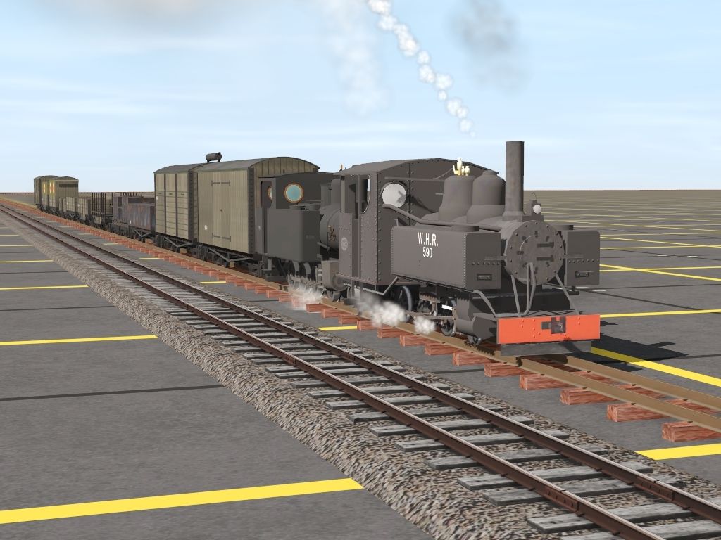 Tags: Trainz Railroad Simulator 2019, Narrow gauge locomotive testing 2ft gauge, Narrow gauge locomotive testing 2ft gauge - Default, WHR Baldwin 590, SF WD Hunslet 4-6-0T, WD stores van, WD machinery van, WD wagon H, WD wagon G, WD wagon F, WD wagon E hinged, WD wagon D hinged, WD wagon A hinged, WD wagon A fixed