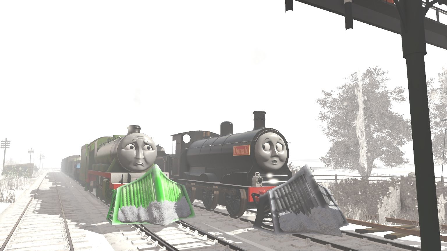 Tags: Trainz Railroad Simulator 2019, IoS - The Kellsthorpe Extension Snowy, TTTE - Donald, TTTE - Henry, TTTE - Douglas, Sodor Snowplough Green (ver.1) (Snow on), TTTE - Donald's Tender, TTTE - Henry's Tender, Sodor Works Unit Coach, TRW - Small China Clay Wagon, TTTE - Douglas' Tender, TRW - SR Pillbox Conflat (4 Poles), TTTE - 7 plank