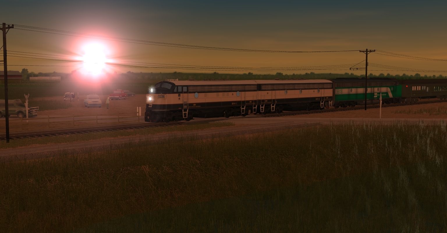 Tags: Trainz: A New Era, IRM 8247 Seeman Rd., BN F9A-2 BN-1, BN F7B BN-2, E9 BN 9918, Invisible Train, Unlettered Pullman Diner, Unlettered Pullman Coach