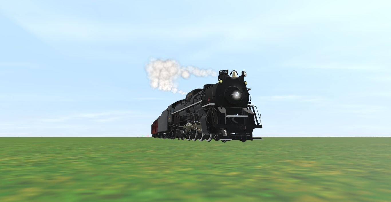 Tags: Trainz Railroad Simulator 2019, Freight and passenger line, Freight and passenger line - Default, NKP 765 with white drivers, NKP 765 Tender weathered, Strasburg Combine Car, Steel Heavyweight Coach Green