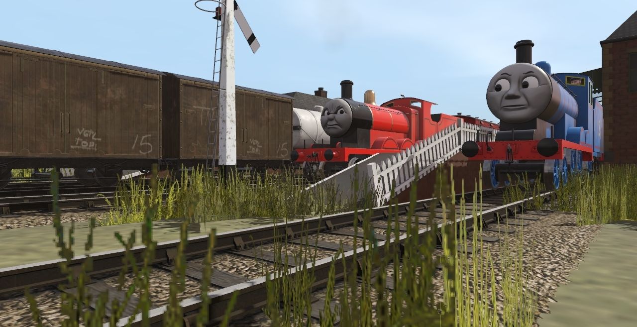 Tags: Trainz Railroad Simulator 2019, IoS - The Kellsthorpe Extension, TTTE - Edward The Blue Engine [TRS19], TTTE - James the Red Engine, TTTE - Edward's Tender [TRS19], TTTE - James's Tender, Jje09 - Sodor Tanker 2019, Red Branchline Coach (1st Class) 2012, TTTE - S4 Fish Van, Red Branchline Coach (1st Class Brake) 2012