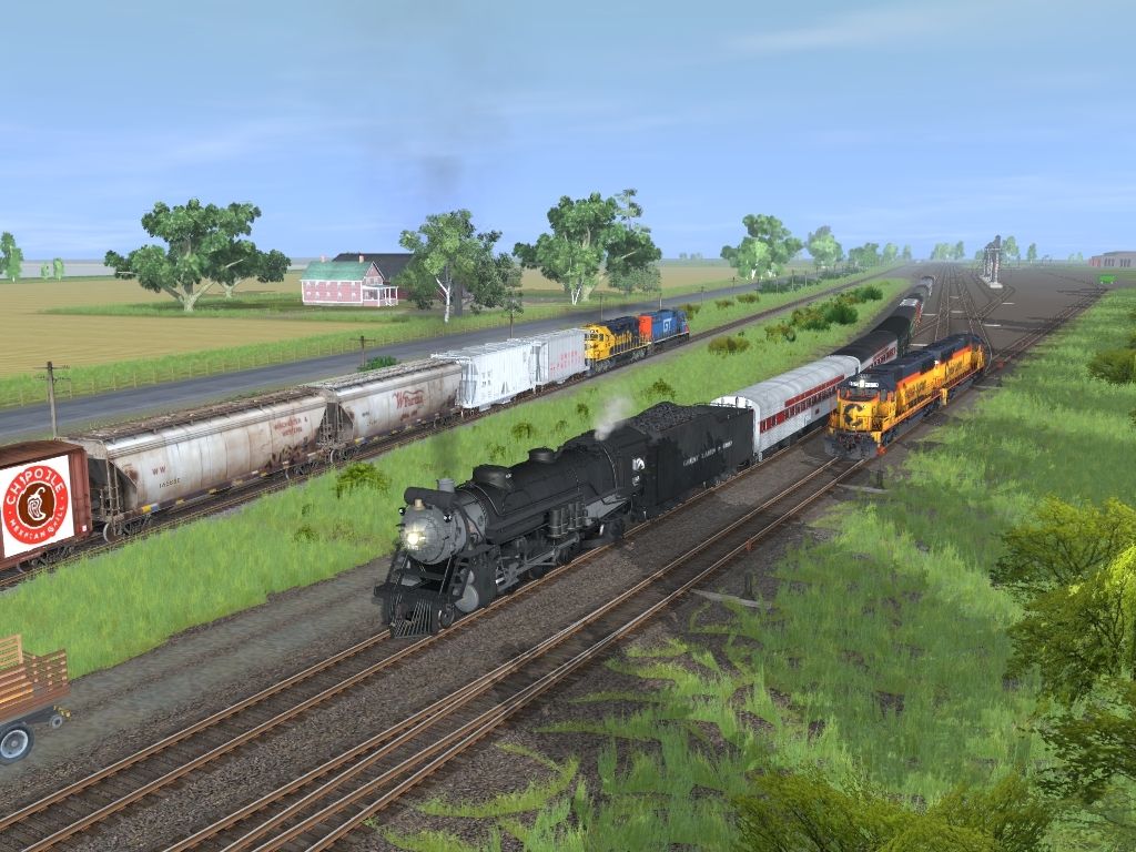 Tags: Trainz: A New Era, Adrianville, PhotoShoot, GL&O 195 Engine, Chessie SD50 (B&O), EMD SD40-2 ATSF 5028-5108 v1, GTW SD40, ACFX (dirty) Cylindrical Hopper, TUME-300581-Centerbeam-MILW, Chipoltle Boxcar, TUME-300551-Covered-Hopper-MILW, GL&O 195 Tender, Custom ACF 3 Bay - Winchester & Western, Cylindrical Hopper - Cotton Belt
