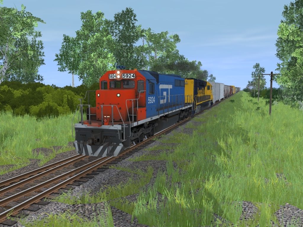 Tags: Trainz: A New Era, Adrianville, PhotoShoot, GTW SD40, EMD SD40-2 ATSF 5028-5108 v1, GL&O 195 Engine, 2Bay Airslide Hopper Union Pacific eMFX#, 2Bay ACF CovHopper Boston and Maine #, Custom ACF 3 Bay - W Farms LLC, Custom ACF 3 Bay - Winchester & Western, Chipoltle Boxcar, GL&O 195 Tender, ACFX (dirty) Cylindrical Hopper, TUME-300581-Centerbeam-MILW