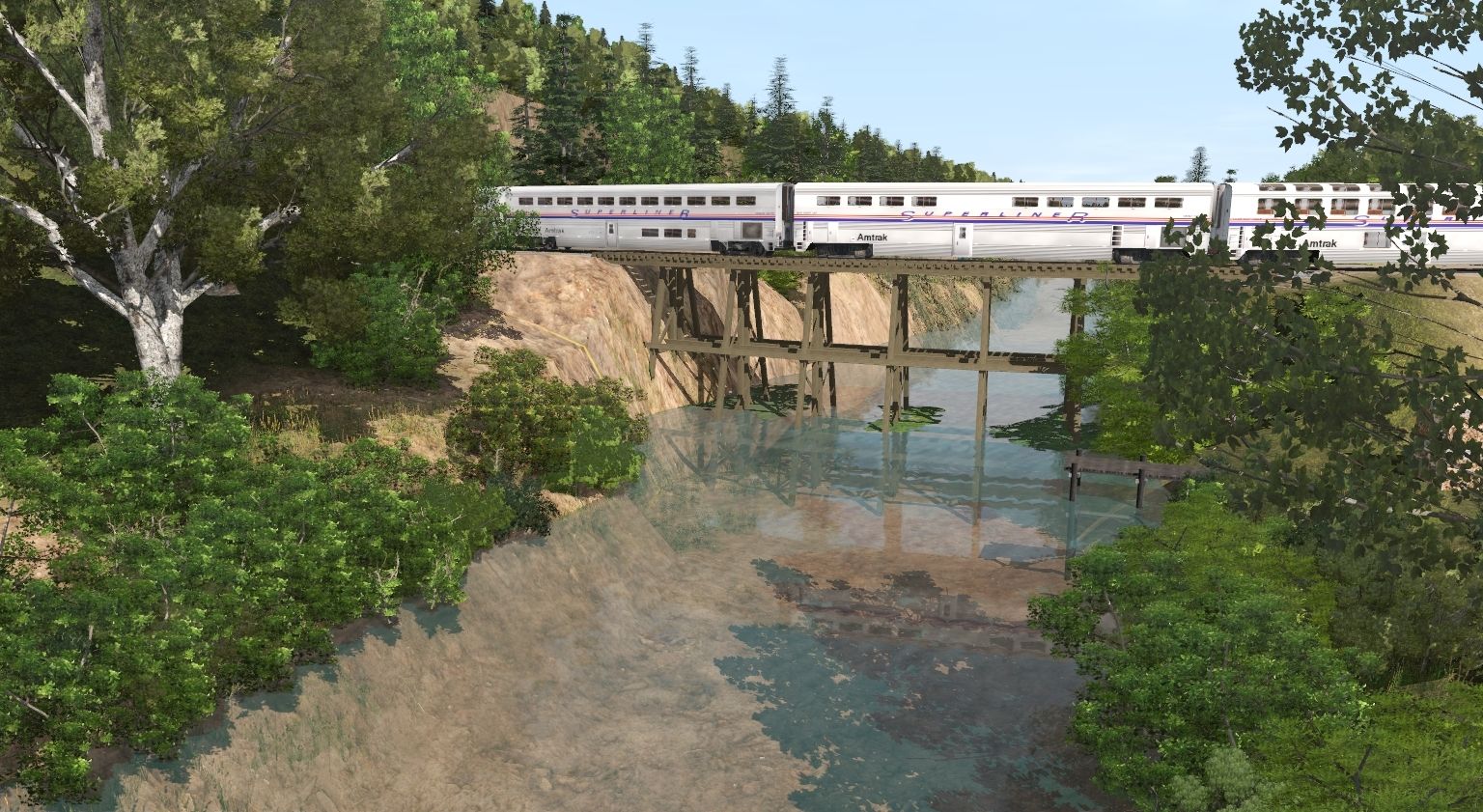 Tags: Trainz Railroad Simulator 2019, The Stockton Diversion 2, Bolivar LongHaul, AMTK P42DC ph V, Superliner II Dining Car 38040, Superliner II Sightseer Lounge 33049, Superliner II Coach 34120, Superliner II Sleeper 32501, Amtrak Phase IV - SS Baggage Car #1023