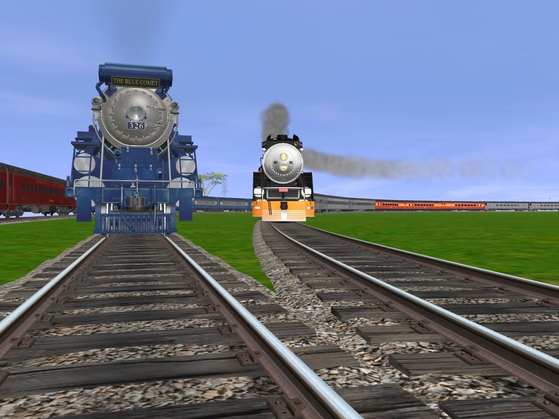 Tags: Trainz: A New Era, New Route, CNJ G3s Blue, N&W J Class Engine, SP GS-4 #4449 Daylight Engine, ATSF GP60M, N&W J Class Aux Tender, N&W J Class Tender, N&W NS Powhatan Arrow 01 P1 Locker Car 502, CNJ G3s Blue Tender, CNJ BlueComet Baggage, SP GS-4 #4449 Daylight Tender, N&W NS Powhatan Arrow 02 P2 Divided Coach 511