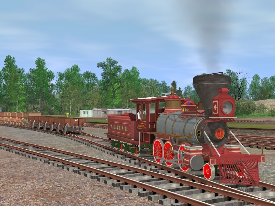 Tags: Trainz: A New Era, A - Utica & Black River RR, Default, V & T loco no 14 (Esmeralda) ca 1870's, V & T loco no 4 (Virginia) - as built, 0-6-6_NPC_08_Bully Boy, 0-4-0T New Hope Valley 17, Virginia & Truckee I.E. James Engine TRAINZ 12, V & T loco no 14 tender ca 1870's, V & T Coach No 3, V & T loco no 4 tender (as built), V & T Baggage / Mail Car No 2, VR N Ballast Wagon Type 1a - 8 ton, Wooden gondola DLW 30ft