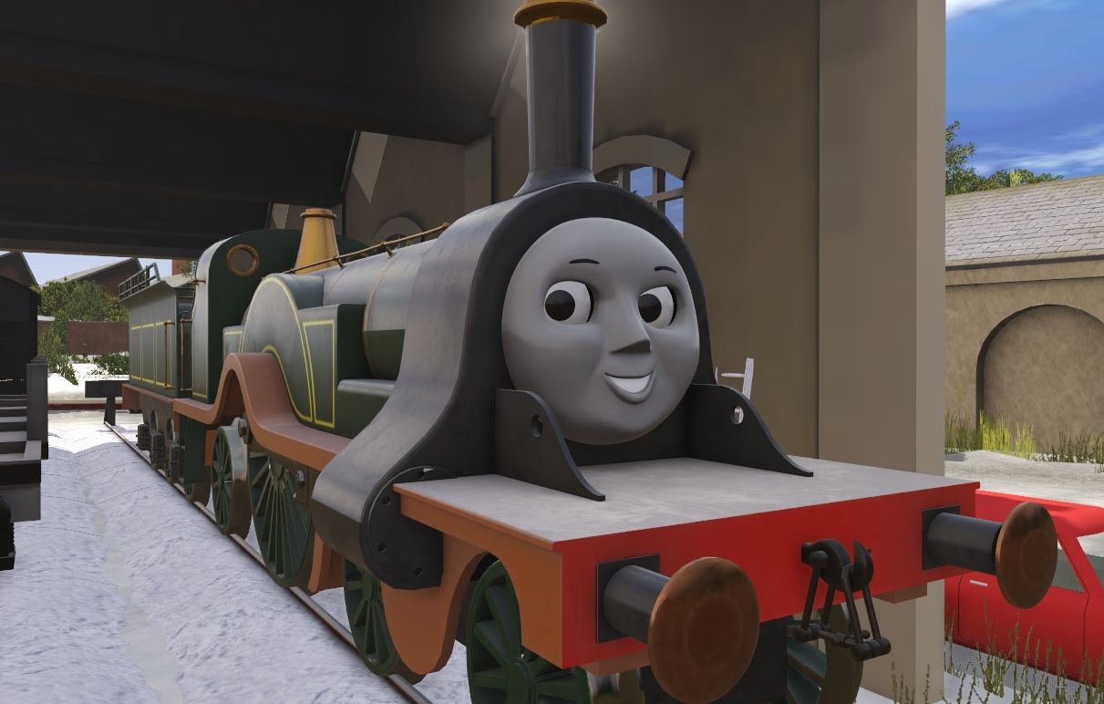 Tags: Trainz Railroad Simulator 2019, IoS - The Kellsthorpe Extension (Snow), TW3D - Emily the Emerald Engine, Jje09 - Sodor flatbed, TW3D - Emily's Tender, TRW - GWR Ventilated Van, TRW - 10T Saxa Salt Van, TTTE - 7 plank