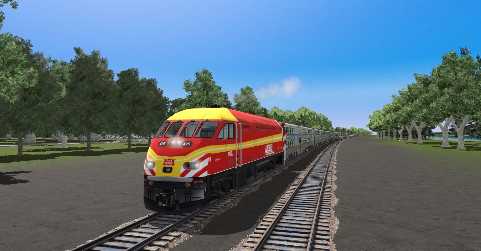 Tags: Trainz Railroad Simulator 2019, Fictional Scenic Railroad, Base Session, Metra MP36PH-3C #425 - Don Orseno, Metra Nippon Sharyo Control Car 8500 Series K3LA, Boeing 737-800 American Airlines (2013)