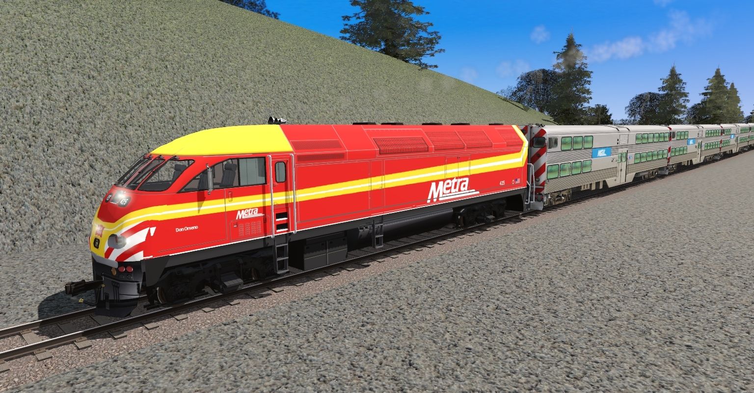 Tags: Trainz Railroad Simulator 2019, Fictional Scenic Railroad, Base Session, Metra MP36PH-3C #425 - Don Orseno, Metra Nippon Sharyo Control Car 8500 Series K3LA